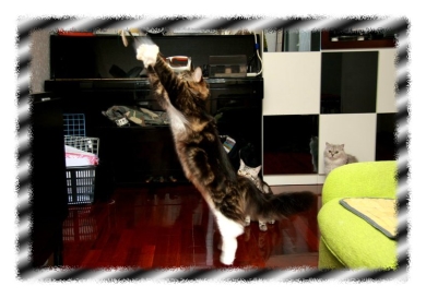 Top Prince is the eldest boy in our B-litter. He has interesting white marking on his muzzle and a very beautiful classic pattern. He has also inherited thick coat and fluffy pants from his dam Mama Mia. His marking is well-balanced and wears white socks and gloves. We really had a hard time choosing between him and his brother Top Man. Top Prince is now a spoiled boy in his new home and is living a peaceful life with his 3 new furry buddies. We have contacts with his new papa and mama from time to time. Recently, we received new shots of him (see below). Seeing that he has become such a big and long boy and is playing so crazily, we were touched! Top Prince was shown in a CFA cat show together with his brother Top Man when they were 4.5 months old. He has not been in the show hall since then, but will soon be shown by his new family in the Premiership category. We really can’t wait to see how he performs in shows and whether he can be granded early, just like his half-brother GP Nekoland Black Man Zorro!