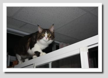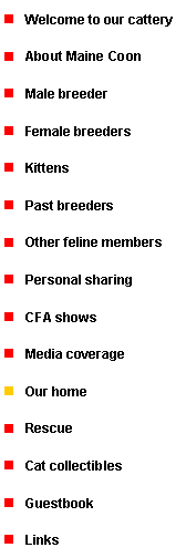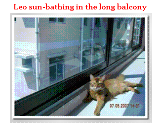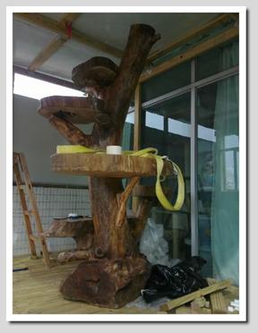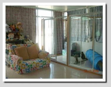 Currently, the Boys’ room on the upper floor accommodates our two studs Da Vinci and his son Fire Fox. The father and the son live peacefully in this room, which is about 350 square feet. To make this room more functional, there is a ‘romance partition’ for visiting queens where mating can take place without disturbance. We are now expanding this room by adding an enclosed garden for our boys. The highlight of this garden, which is still under construction, is the huge ’genuine cat tree’ which enables our energetic boys to exercise and appreciate the views outside while enjoying some fresh air. Although the upper floor is exclusively for our big boys, from time to time, we allow our kittens to roam about the floor so as to socialize them with their father and brother. This helps to prepare them for moving into this room when they grow up and gradually become less active in cat shows.
